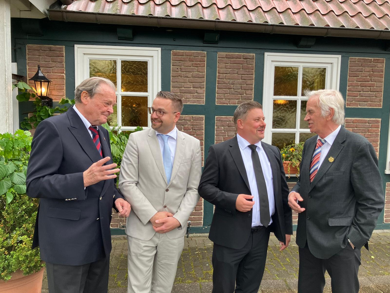 Gildevorsteher Manfred Willms (links) und Werner Bach (rechts) im Gespräch mit den beiden Kandidaten Martin Slotosz (2. v. li.) und Danny Hilbert